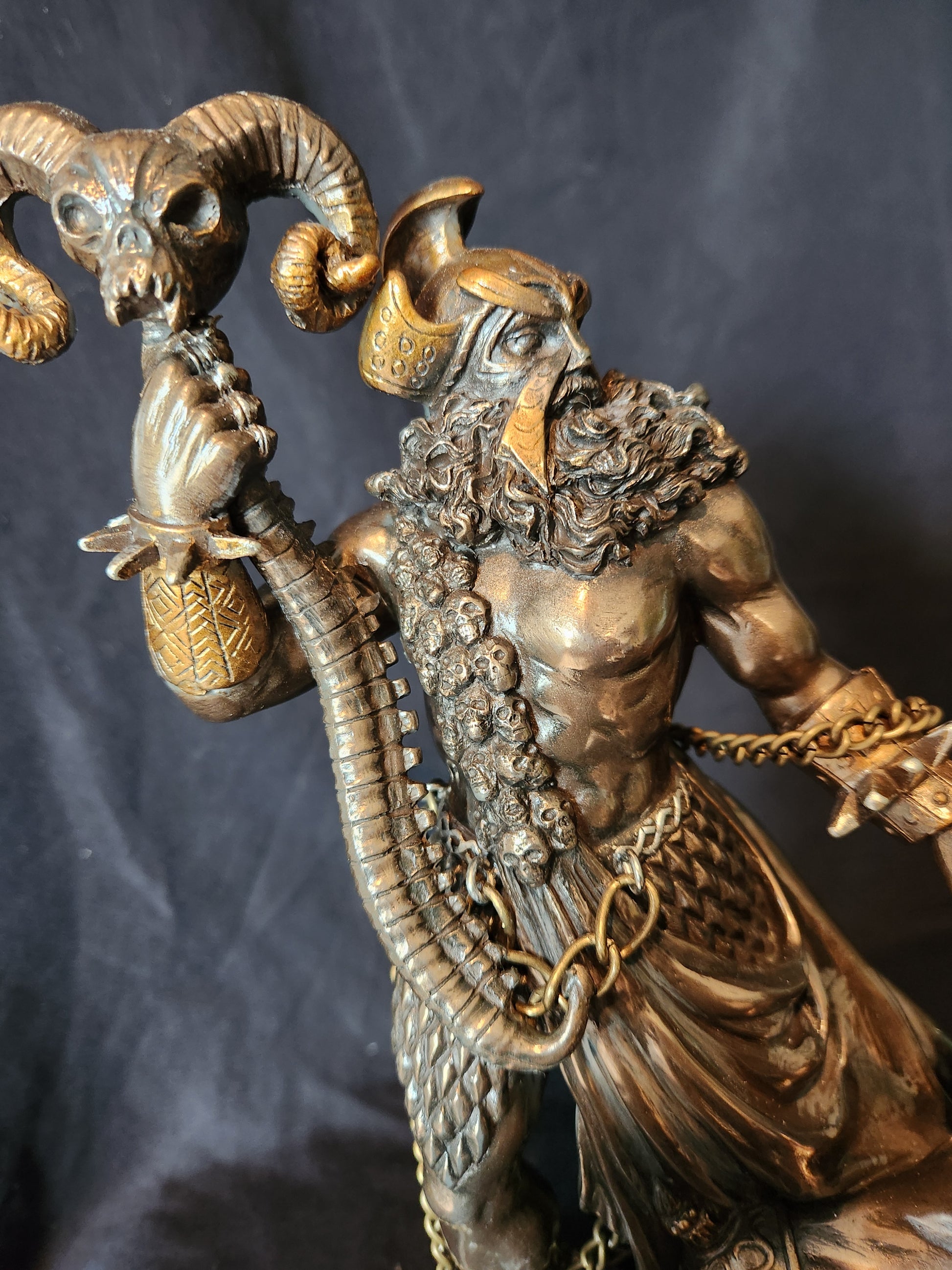 Strike fear into the hearts of all those that come near with this chilling and gorgeous cold cast resin statue of the King of the Underworld, Hades.