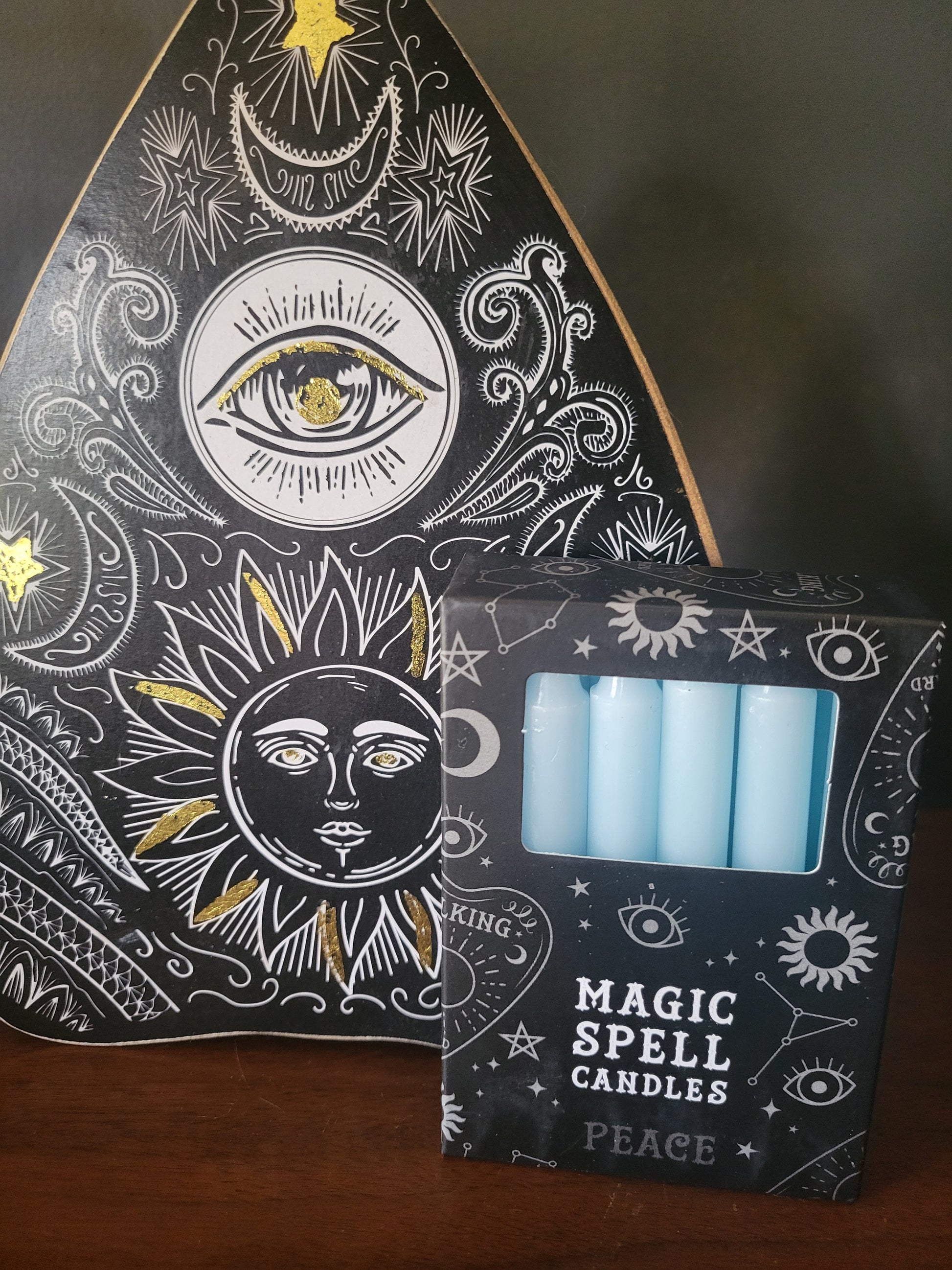 Restore some harmony and tranquility into your life with these baby blue magic candles. One of the oldest and simplest form of spellcasting, candle magic typically involves writing one's intentions onto a piece of parchment, and then burning said parchment in the candle while focusing on the intention, or perhaps reciting an incantation. Regardless of one's method and practices, these soft baby blue candles are the perfect addition to your next ritual.