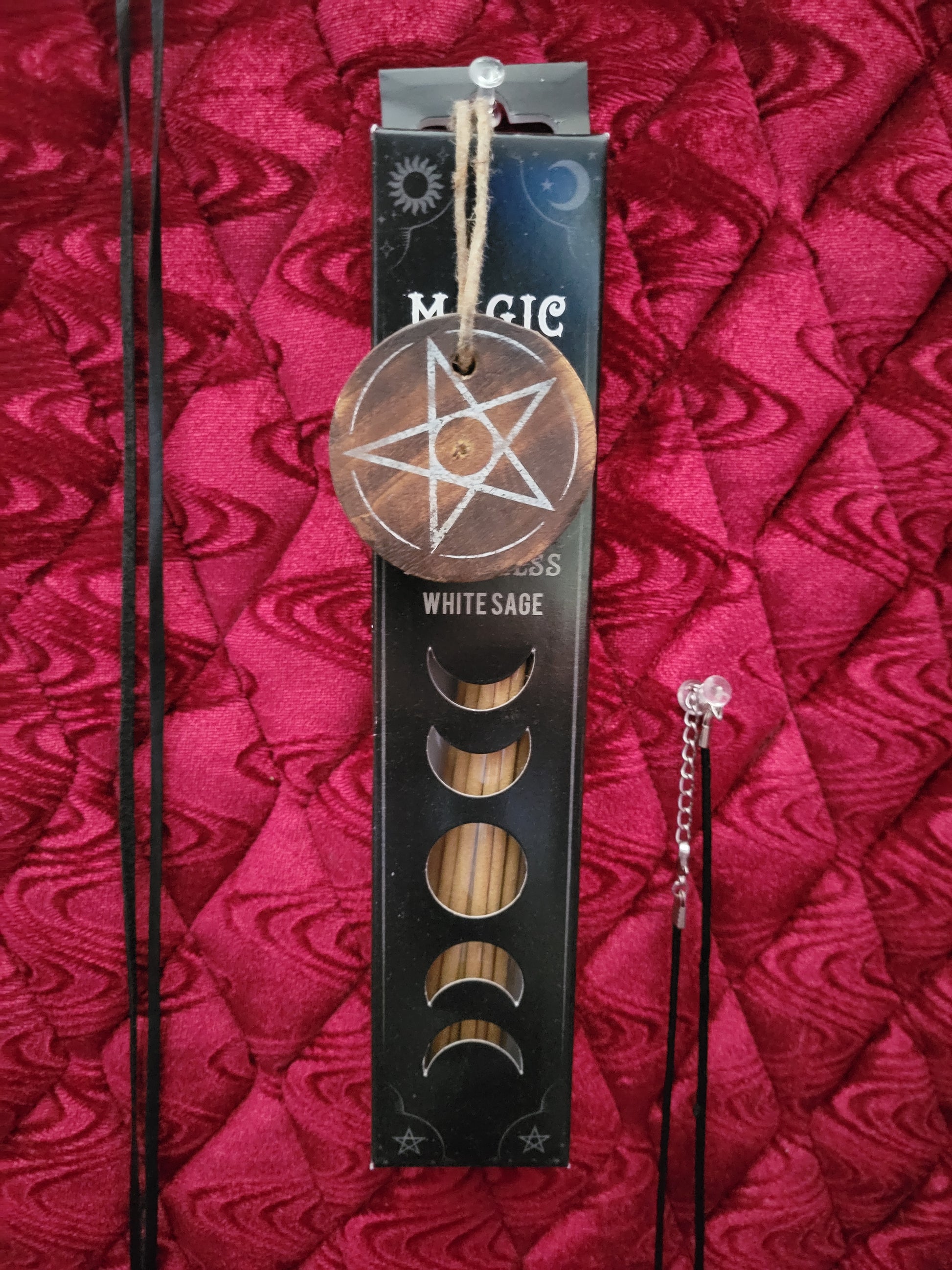 Includes 15 sticks and a pentagram-style holder.