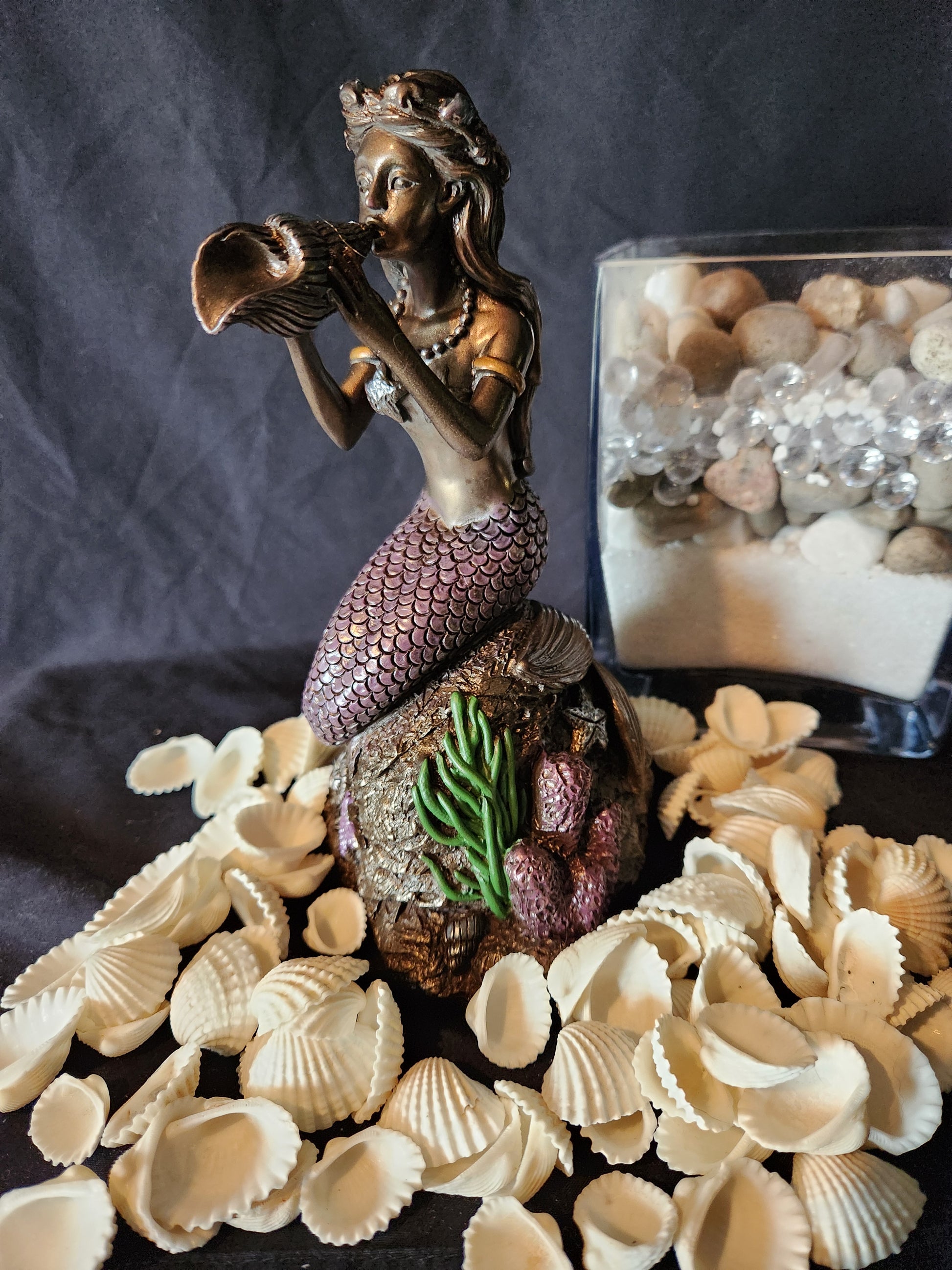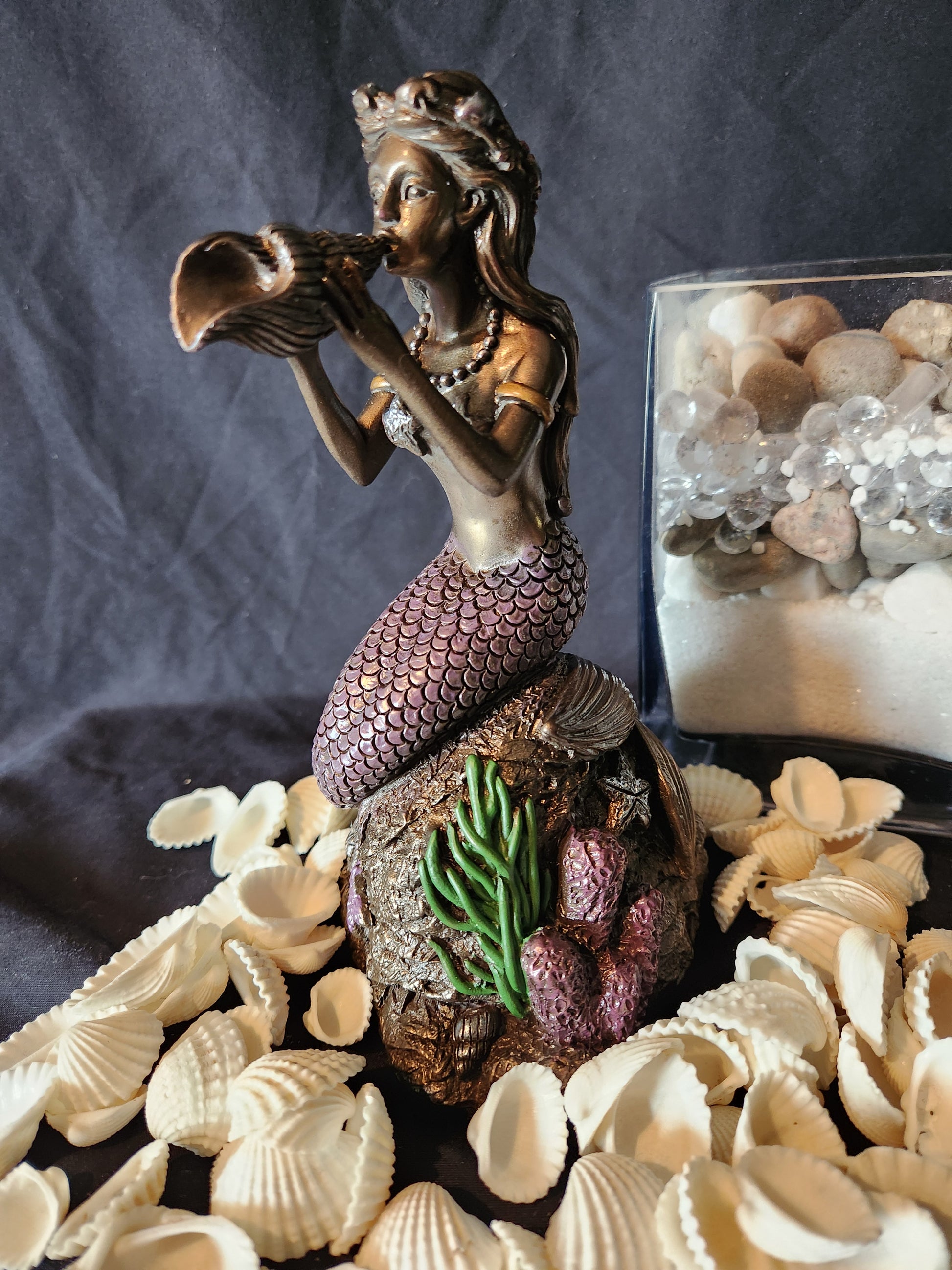 Be swept away in the current with this radiant mermaid statuette!
